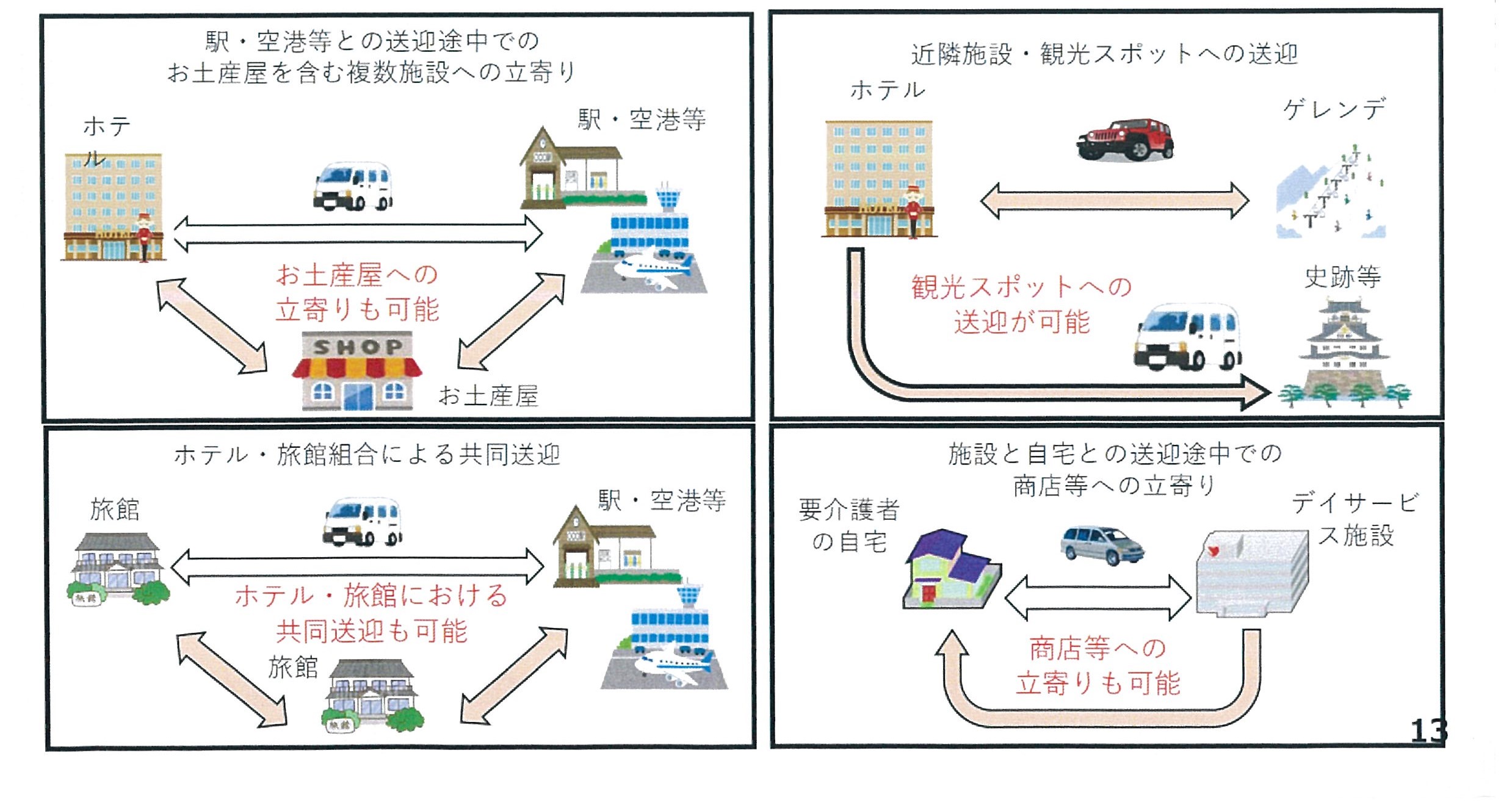 → 商店等への立ち寄り・観光スポットへの送迎も可能であることを明記しました。