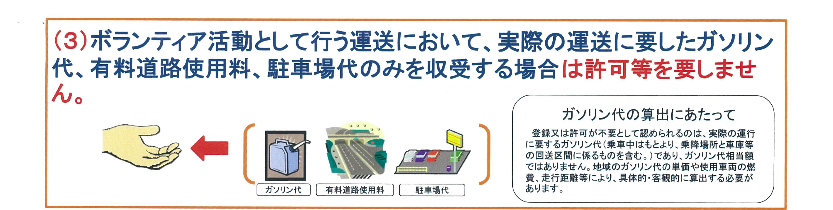 〇無償運送については、道路運送法による規制がなく、自由に実施可能、かつ運送をおこなえる範囲に制限なし。